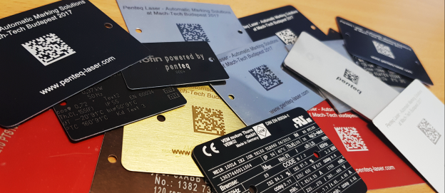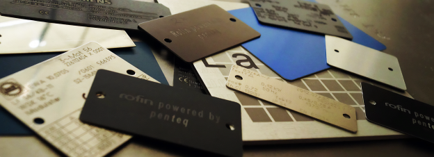 Neben klassischen schwarzen Typenschildern aus eloxiertem Aluminium markieren Sie problemlos Edelstahl, Kunststoffe, Messing, oder weitere Materialien wie lackierte Oberflächen. Ganz gleich, ob Sie kleine Stückzahlen oder eine automatisierte Massenproduktion benötigen – mit Penteq erhalten Sie für jede Anforderung die passende Lösung.