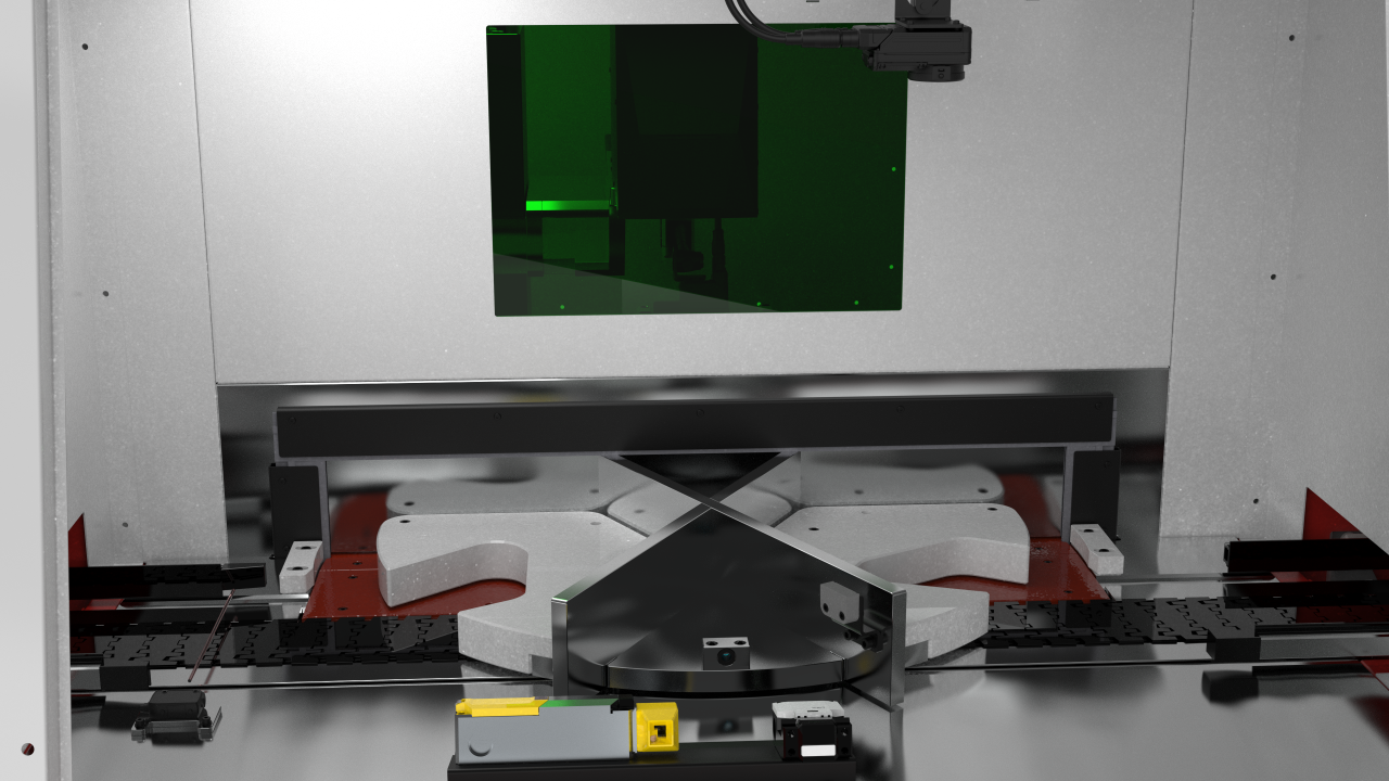 Die einzigartige Konstruktion des Taschenrad-Lasersystems ermöglicht einen nebenzeitenoptimierten Betrieb bei gleichzeitig höchster Sicherheit.