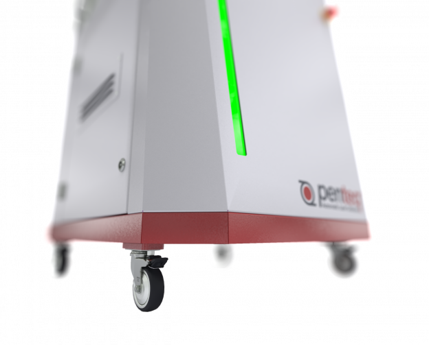 Mit seiner kompakten Bauweise und den Rollfüßen lässt sich der BellCape Laser mühelos auf ebenen Böden zu verschiedenen Einsatzorten rollen. Ideal für wechselnde Produktionsstandorte oder den flexiblen Einsatz in großen Produktionshallen.