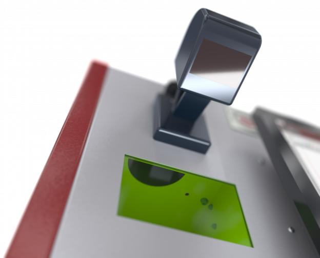 Ein integriertes, CE-zertifiziertes Laserschutzfenster erlaubt zur Prozessbeobachtung den Einblick in den Laserraum.