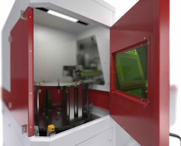 The system can be switched to a manual operating mode to process rush jobs in between. The large automatic front door is then used to load and remove the workpieces to be labelled