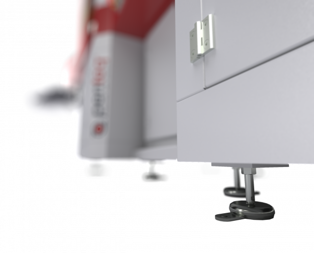 The laser system is equipped with adjustable machine feet for standard hall floors.