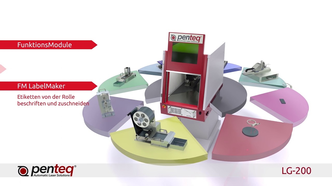 Modulares Laserbeschriftungssystem LG200 zum Makieren und Laserbearbeiten von unterschiedlichen Werkstoffen wie Stahl, Edelstahl, Messung, Aluminium und zahlreiche Kunststoffe. Universell einsetzbares Basissystem kann zu jeder Zeit mit FunktionsModulen ausgestattet werden. Automatisch Typenschilder markieren oder automatisch Laseretiketten erzeugen, Dehachsen oder XY-Tisch und zahlreiche weitere FunktionsModule sind verfügbar. https://www.penteq.com/lg-200/