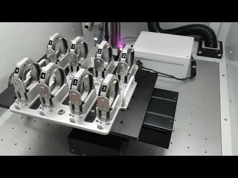 Laser system with rotary indexing table for maximum productivity for laser marking, laser cleaning and laser structuring. The turntable enables simultaneous loading and unloading of the workpieces during the production process. The parts manipulation can be done manually by an operator or by a robot. A unique feature is the possibility to load the working space alternatively through the side door. As a result, even large workpieces can be processed.