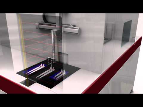 Automatisches Laserbeschriften von Wendeschneidplatten unterschiedlichster Formen und aus vershiedenen Werkstoffen. Die Werkstücke werden über Werkstückträger sortenrein der Laseranlage zugeführt, vermessen und beschriftet. Anschließend werden die fertigen Werkzeuge auf die Entnahmeposition ausgefahren. Die Bedienung ist sehr einfach und das Anlegen neuer Produkte kann durch das Bedienpersonal erfolgen. Eine Beladetür an der Frontseite ermöglicht manuelles Laserbeschriften von Eilaufträgen zwischendurch.