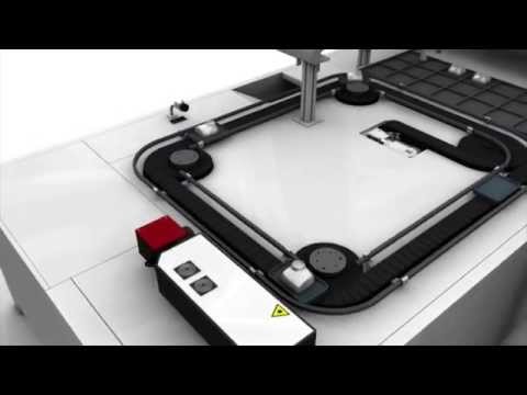 2 Stationen zum Beladen ermöglichen durch abwechselnden Betrieb die Vorbereitung der zu beschriftenden Werkstücke als Stapel während der laufenden Fertigung. Das Ablegen der fertig gestellten Produkte erfolgt sortiert auf bis zu 5 Stationen. Eine optische Erkennung gewährleistet die exakte Positionierung der Beschriftung auf den Werkstücken.